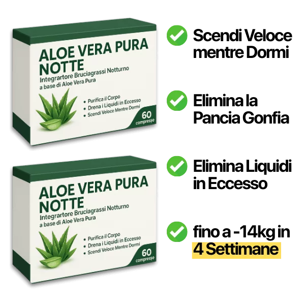 N.B.: nel tuo ordine riceverai 2 Confezioni di Aloe Vera Pura, contenenti il giusto numero di compresse per 4 settimane di trattamento notte completo.